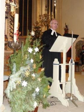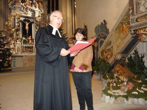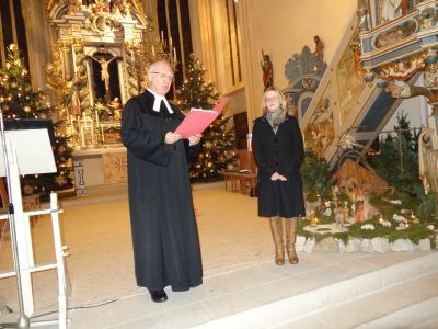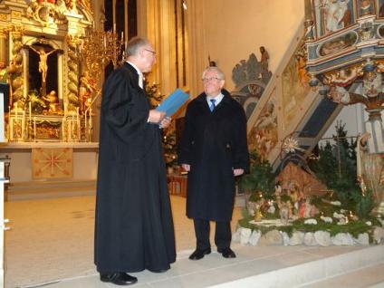 Im Jahresschluss-Gottesdienst ehrte Pfarrer Eichinger den Lektor Friedrich Riffelmacher, den Lektor Hermann Eitel und das gesamte Kindergottesdienst-Team. Sie alle haben eines gemeinsam: Sie sind schon seit Jahrzehnten für die Kirchengemeinde in großer Treue tätig.