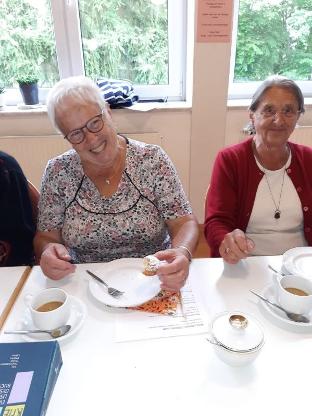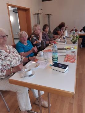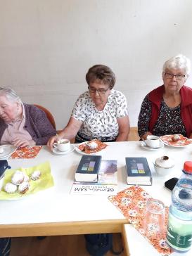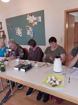 An unserer Kaffeetafel waren viele Plätze besetzt und wir konnten zwei neue Gäste begrüßen. Damit sich alle ein bisschen kennen lernen, haben wir noch eine lustige Vorstellungsrunde gemacht