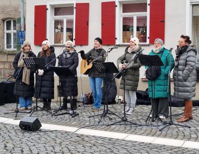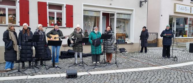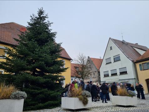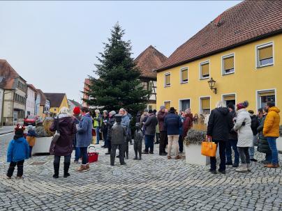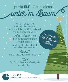Am 4. Adventssonntag, den 21. Dezember, fand um 11 Uhr der GottesdienstPunkt 11 auf dem Marktplatz in Markt Erlbach statt. Unter dem großen Weihnachtsbaum versammelten sich zahlreiche Besucherinnen und Besucher zu einem stimmungsvollen Open-Air-Gottesdienst an diesem kalten Wintermorgen.