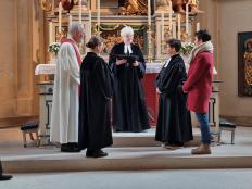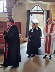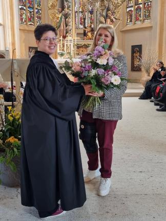 Zu ihm gehörten die Ermutigungsansprache der Dekanin, ihre Segensworte und der Segen zusammen mit den 3 Assistenten, die Frau Schüler ausgewählt hatte, das Gelöbnis der Pfarrerin und der Gemeinde, sich für Gottes Wort und gegenseitige Unterstützung einzusetzen.