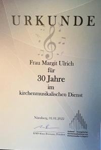 Das Rätsel löste sich schnell auf - im Kuvert war eine Urkunde für 30 Jahre vom Verband der Kirchenmusiker in Bayern und der wunderschöne Blumenstrauß ein Zeichen des Dankes von meiner Kirchengemeinde!