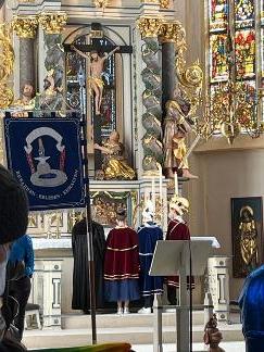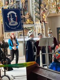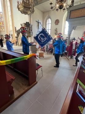 Besonders berührende Momente in diesem Gottesdienst: das wohltönende Solo-Trompetenspiel von Herrn Bien der Nachruf auf das vor kurzem verstorbene Mitglied der Faschingsgesellschaft, Herrn Friedlein alias „Scheich“ die Fürbitten des Kinder-Prinzenpaares