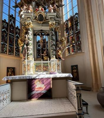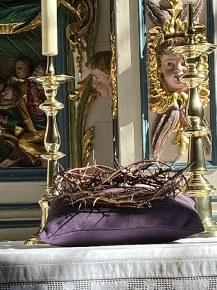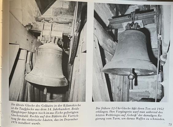 Anschließend, in der bereits für die Passionszeit mit dem violetten Parament versehenen Kirche, machte ich mir so meine Gedanken. Unsere Mesnerin Frau Krämer kam sehr kurz vor 12 Uhr und pünktlich begannen die Glocken zu läuten. Naja - es sind ja nur einige Knöpfe zu drücken und da begann es in meinem Kopf zu arbeiten! Früher wurden die Glocken per Hand geläutet. In der Glockenkammer, im Altarraum linke Tür, befand sich das Uhrwerk und von der Decke hingen 4 Seile herab die bei Bedarf gezogen wurden. Morgen- und Abendgebet konnte der Mesner allein bewerkstelligen; aber bei allen Gottesdiensten mit mehreren Glocken benötigte er Hilfe. Und die hatte er: Mit den Läut-Buben!! Läutbube zu sein war ein Ehrenamt und unzählige junge Markt Erlbacher Burschen – natürlich mittlerweile in die „Jahre“ gekommen - sind heute noch stolz darauf einer gewesen zu sein.