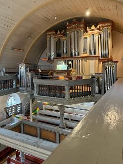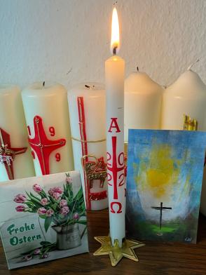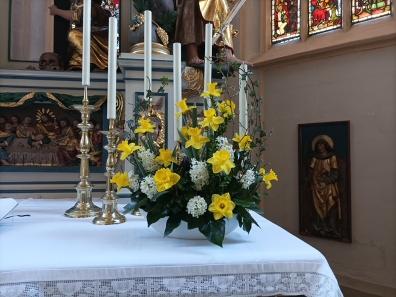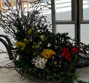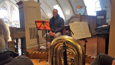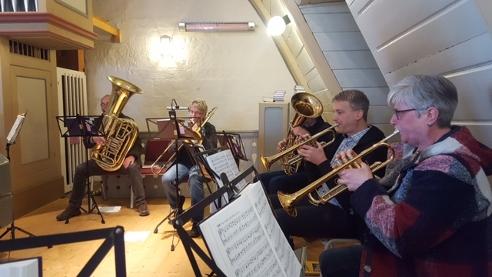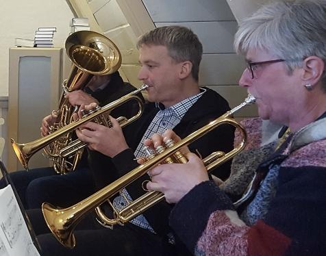 In der österlich geschmückten Kirche übernahm der Posaunenchor den „Orgeldienst“
