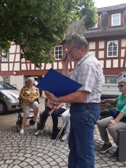 Am Marktplatz wartet Herr Zink schon auf uns und er wusste viel über seinen Heimatort zu erzählen. Wir lauschen gespannt.