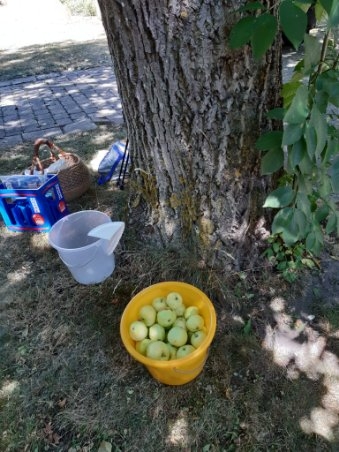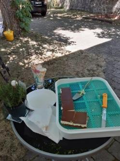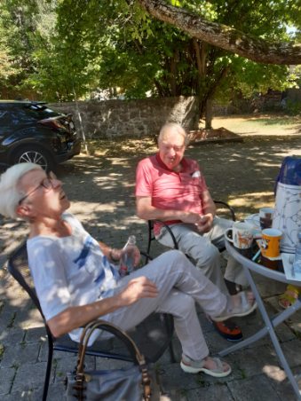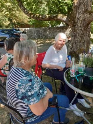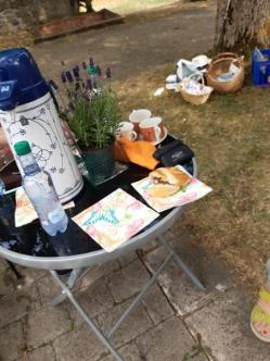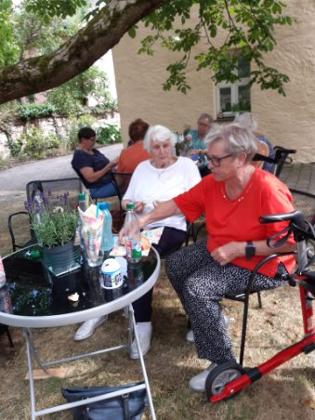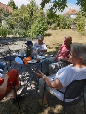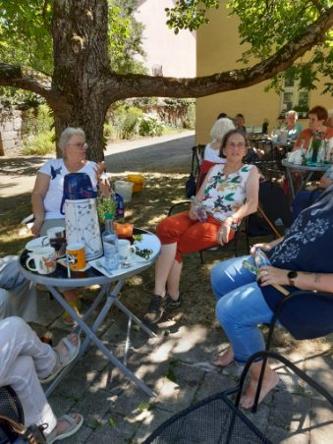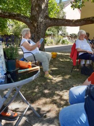 Im Schatten des wunderschönen Nussbaums im Pfarrgarten in Linden zu einem kleinen Abschiedsfest in die Sommerpause.