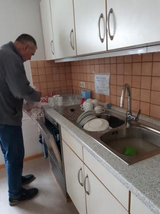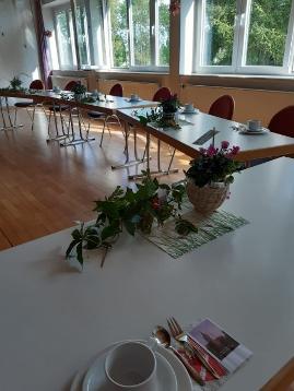 Vom vielen Aufpassen und Lauschen waren wir Kaffee durstig. Im Gemeindehaus stand alles bereit und alle, die gekommen waren genossen den selbstgebackenen Zwetschgenkuchen und die gesellige Unterhaltung