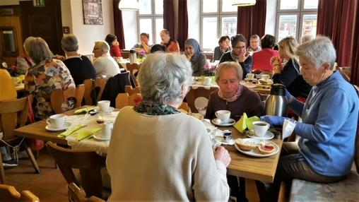 Das Frauenfrühstück des Frauenbibelkreises fand diesmal nicht im Gemeindehaus – sondern im Bürgerhaus statt. Corona ließ grüßen. Für das Team des Frauenbibelkreises war die Vorbereitung diesmal leichter – ohne das Tische-Schleppen – und mit der gut ausgestatteten Küche gleich nebenan. Und die Gäste – es waren um die 30 – fühlten sich in der gemütlichen Gaststube auch sichtlich wohl.