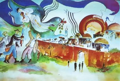 Das erste Bild zeigte Jerusalem, die goldene Stadt mit dem Felsendom. An dessen Stelle hatte einst der Tempel gestanden. In Jerusalem treffen Europa, Asien und Afrika zusammen – es ist ein Bild dafür dass sich hier die Einheit der 3 großen Religionen Judentum – Christentum – Islam vollziehen könnte. „Schalom, Schalom“ Frieden, Frieden! So grüßt man sich in Israel, so hörten wir es auch als Lied.