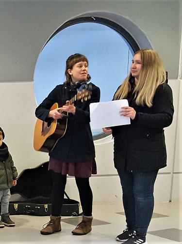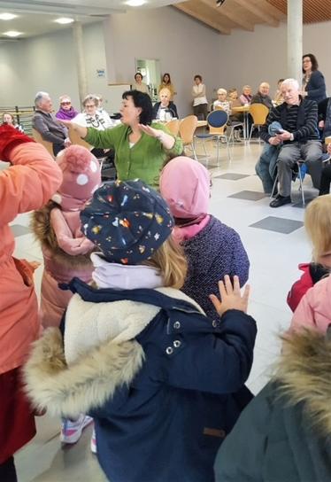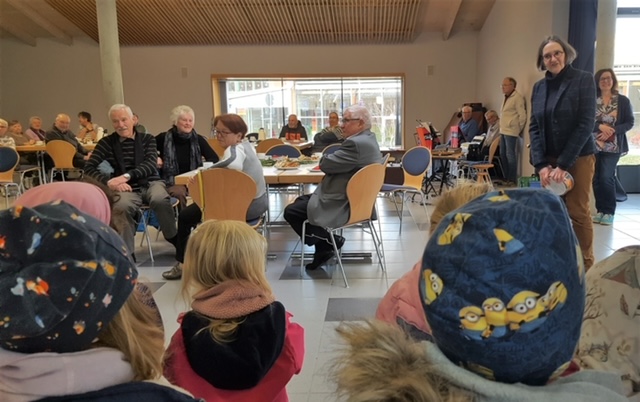 Ein besonderes Highlight des Nachmittags war der Besuch von den ev. Kindergartenkindern. Sie kamen pünktlich um ein paar fröhliche Lieder mit Begleitung von Gitarre und Rasseln für die Senioren vorzusingen.