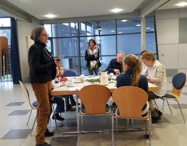 Nach dem Auftritt von den Kindern, hat Pfarrerin von Rotenhan eine Andacht gehalten. Danach lud sie die Gäste zum reichlich gedeckten Tisch und zum gemütlichen Kaffeetrinken ein.
