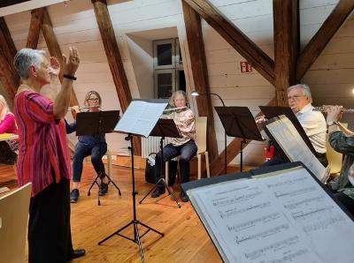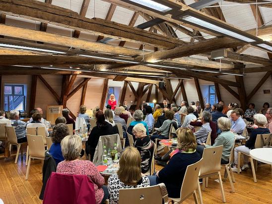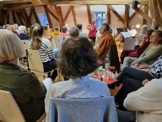 Der Saal des Bürgerhauses zum Löwen war bis auf den letzten Platz besetzt, nicht zuletzt auch wegen der musikalischen Unterstützung der Querflötengruppe „Wir Flöten“, die professionell durch den literarischen Abend führten und das Publikum am Ende des Abends mit einem gemeinsam gesungenen Abendlied verabschiedeten.