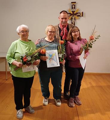 Mehrere Sängerinnen wurden für 30 Jahre treues Mitsingen geehrt und bekamen eine Urkunde von Gerhard Schröter überreicht. Frau Elfriede Riffelmacher, Frau Erika Engelhardt und Frau Irene Löwinger wird für die gut investierte Zeit gedankt!! DANKE!! |